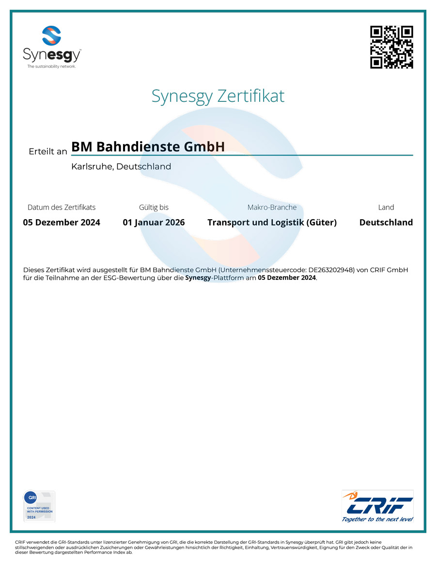 Die BM Bahndienste GmbH ist spezialisiert auf die Bereiche Gleisbaulogistik, Personalservice, Traktion und Transporte.Wir bieten Ihnen ein breites Leistungsspektrum und gehen gerne individuell auf Ihre Wünsche ein.